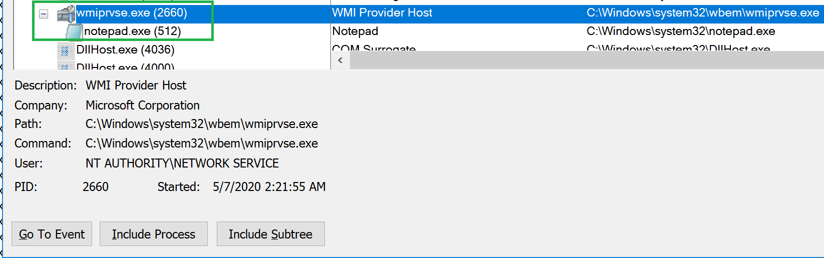 Calling the Win32_Process class is not the only way to leverage WMI classes for remote command execution. Philip Tsukerman (@PhilipTsukerman) released a lot of great information about WMI Lateral Movement tradecraft in the “No Win32_Process Needed – Expanding The WMI Lateral Movement Arsenal” blog post as well this talk.